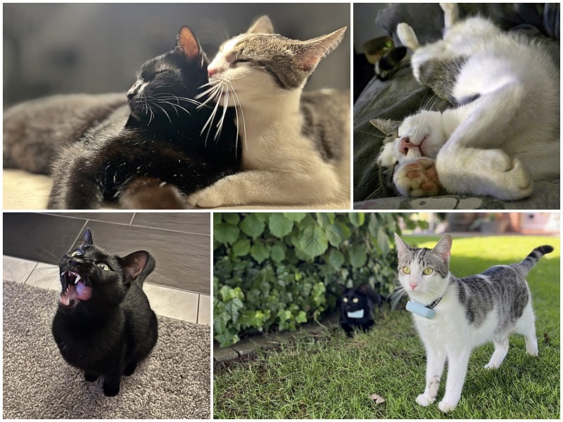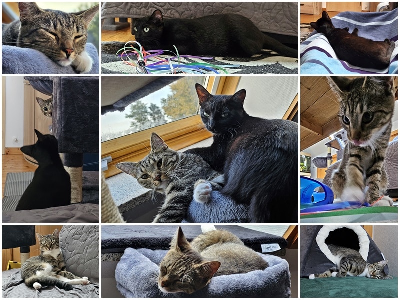 Wir sind es, eure ehemaligen Katzenkinder Boom und Boomer. Wir wohnen nun schon seit einigen Monaten, um genau zu sein seit 9 Monaten, in unserem neuen Für-immer-Zuhause. Wir wollten uns nochmal recht herzlich bei euch allen bedanken, dass ihr euch so gut um uns gekümmert habt. In unserem neuen Heim haben wir einen tollen Garten in dem wir uns tagsüber, wenn unsere neuen Eltern daheim sind aufhalten dürfen. Unsere Nachbarn haben ebenfalls 3 Katzen, mit denen wir tagsüber nur Unfug anstellen 😉😊