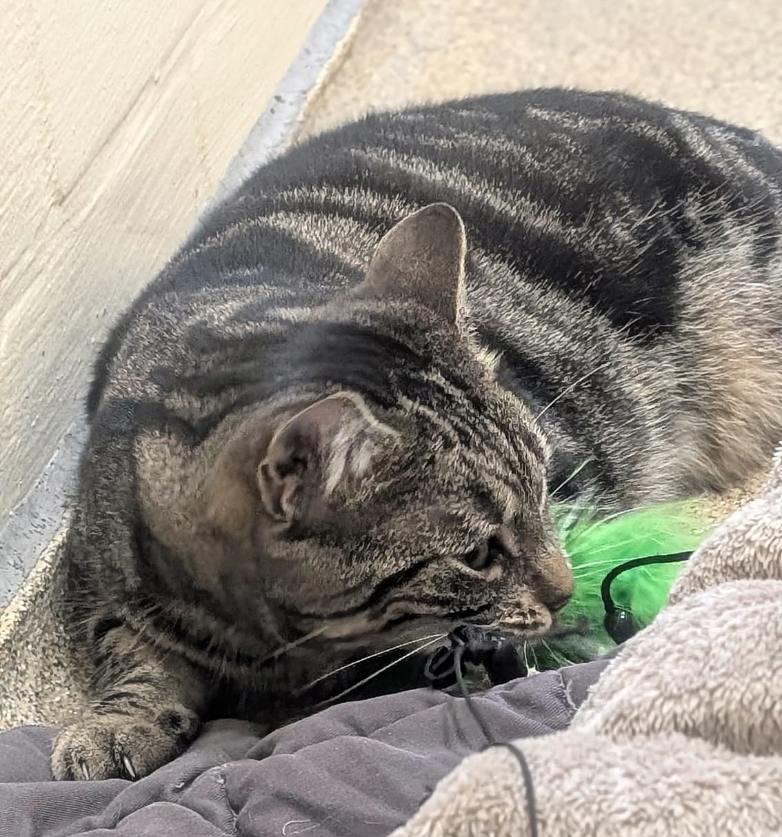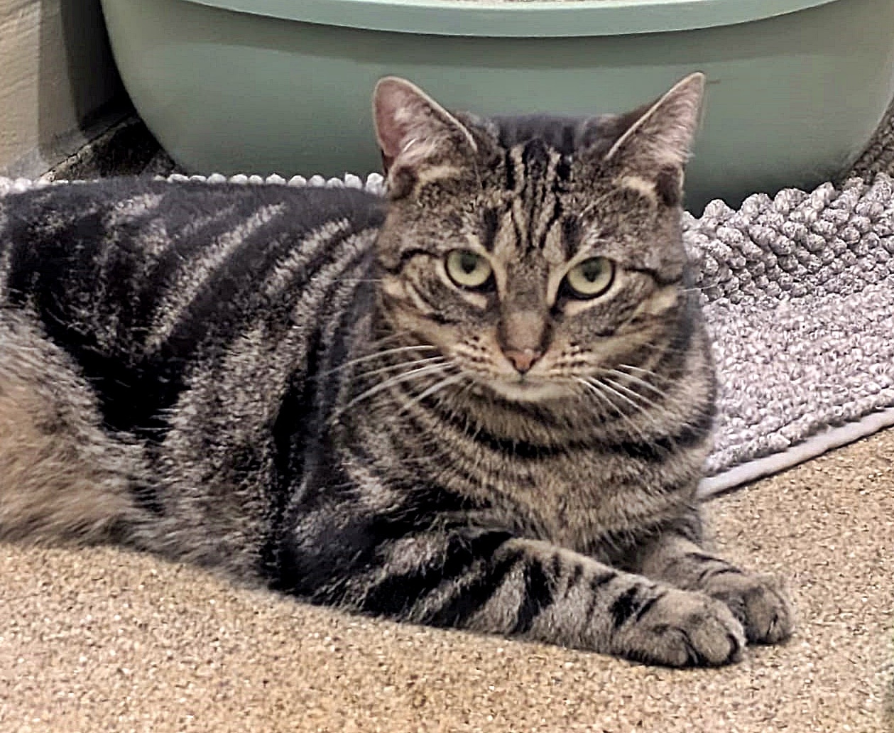 Beelzebub ist, anders als ihr Name vermuten lässt, ein junges Katzenmädchen. Sie kam als kleine Grautigerin zu uns ins Tierheim, inzwischen ist sie zu einer stattlichen jungen Katzendame heran gewachsen :-). Beelzebub ist ein liebes Katzenmädchen, das sich gerne mit der Spielangel animieren lässt. Allerdings bemerkt man schnell ihre Schüchternheit - leider kann man sie momentan noch nicht anfassen :-(