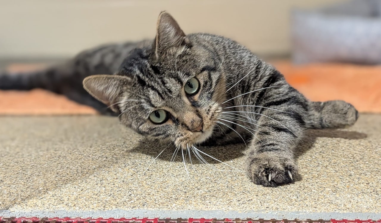 Henrik kommt mit seiner Hüfte gut zurecht, nur beim Springen sollte man etwas vorsichtig sein. Das ist auch der Grund, warum wir ihn in auslastender Wohnungshaltung (mit eingenetztem Balkon) sehen, evtl. auch mit einem katzensicher eingezäunten Garten.