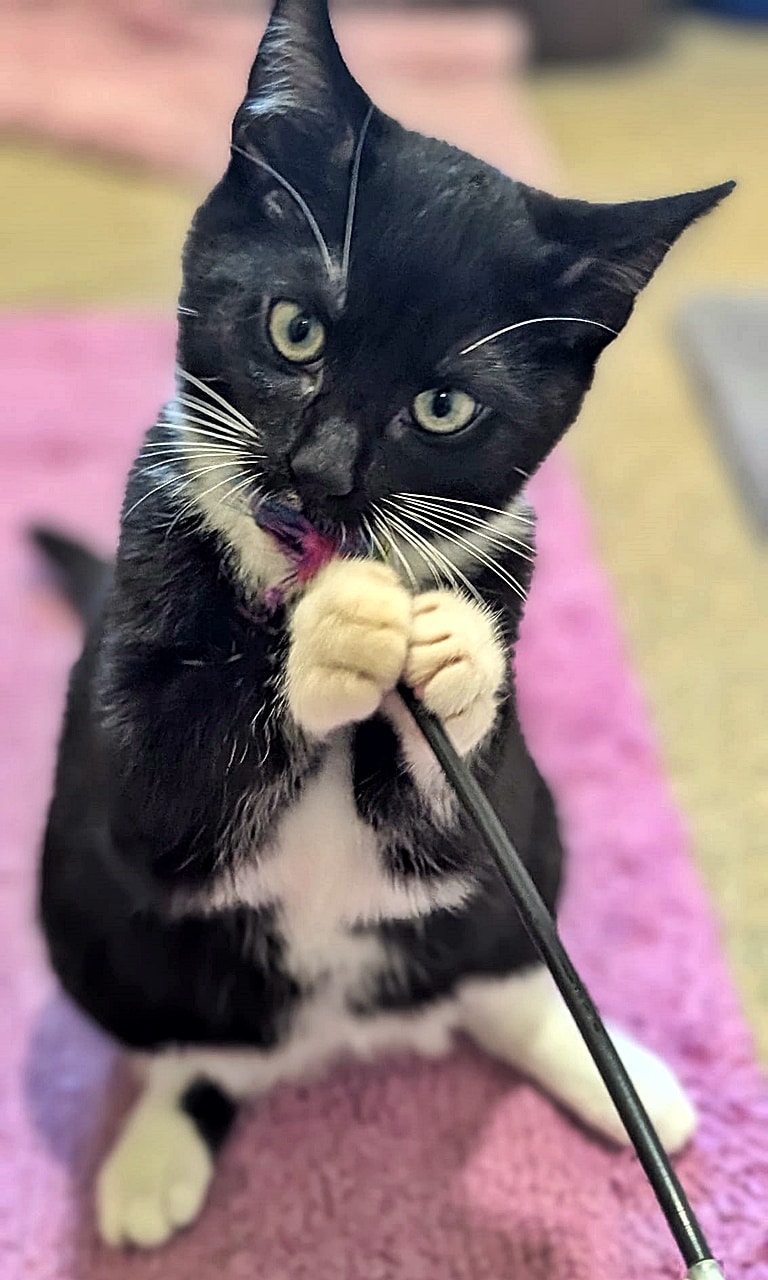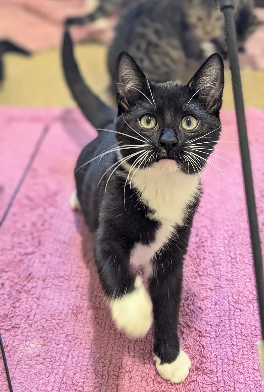 Janis (weiß auf der Nase), Fiete und Sara kamen als Winzlinge mit ihrer Mutter Grace und zwei weiteren Geschwistern in unser Tierheim. Sie sehen sich sehr ähnlich, man kann sie kaum auseinander halten.