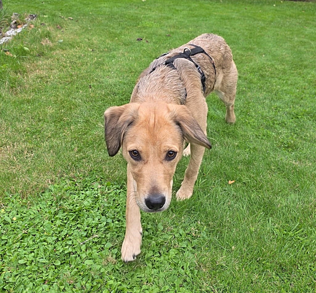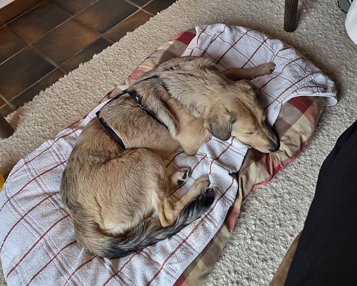 Wir haben die junge Mia aus einem befreundeten Tierheim übernommen, gemeinsam mit weiteren Welpen, in der Hoffnung, dass sie schneller eine eigene Familie findet.
