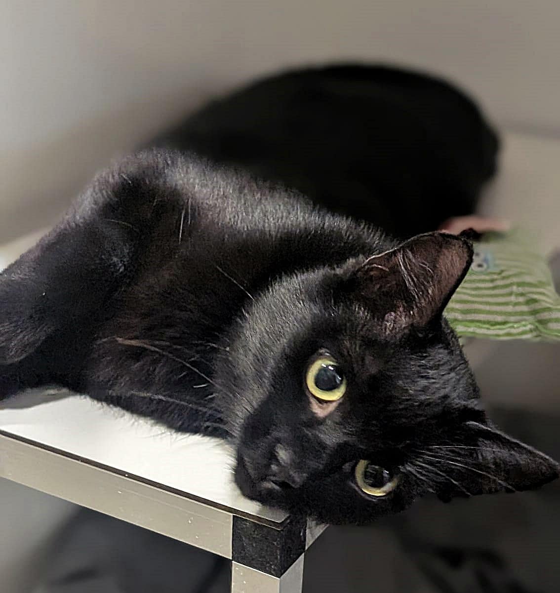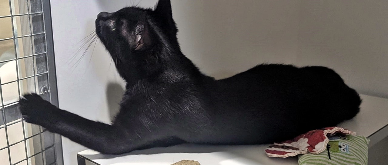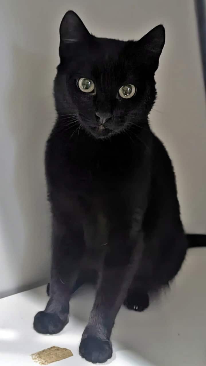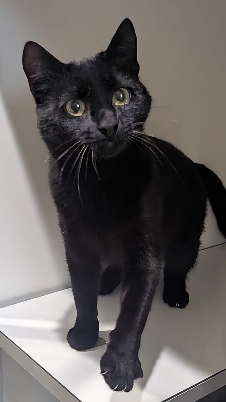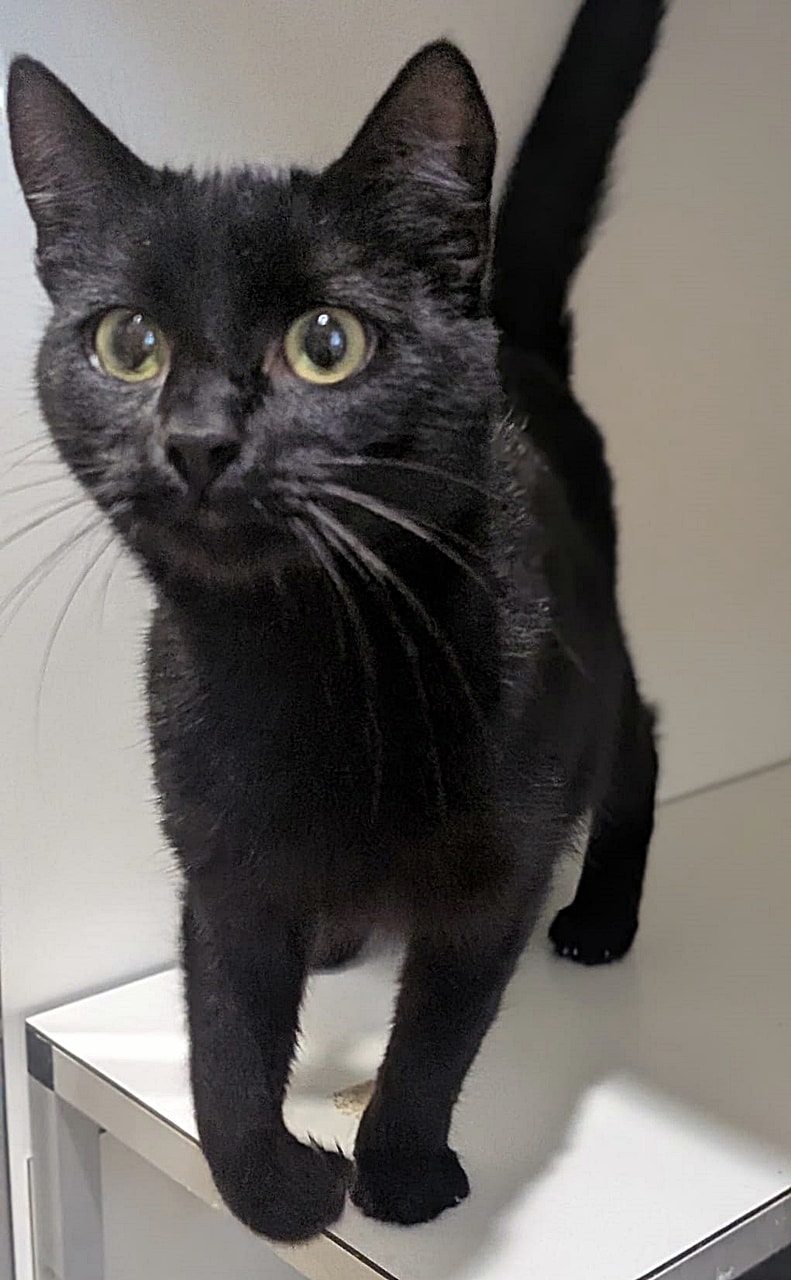 Die schöne lackschwarze Ushi kam gemeinsam mit ihren Kindern Pushi und Torsten in unser Tierheim.