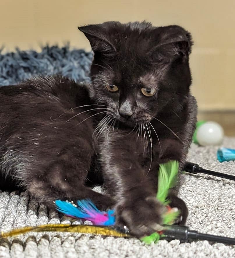 Der Kleine zeigt sich bei uns super lieb und aufgeschlossen, er genießt ausgiebige Streicheleinheiten. Kittentypisch ist er außerdem sehr verspielt. Zusätzlich besticht er durch seine großen Kulleraugen :-)