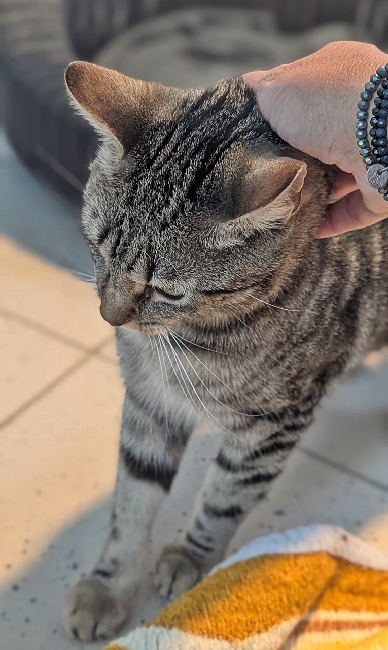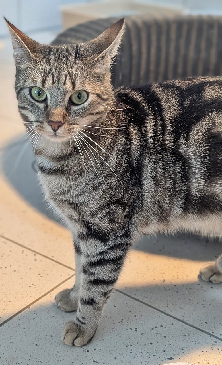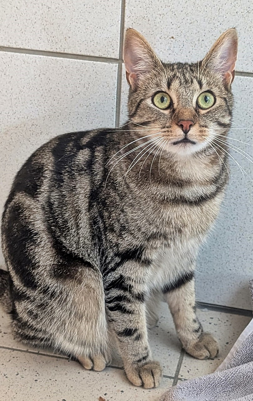 Der schöne junge Brauntiger Davidson mit geblodgtem Fell kam gemeinsam mit einigen Artgenossen als Fundkitten zu uns ins Tierheim. Leider hatten wir aufgrund der vielen Samtpfoten nicht viel Zeit, uns viel mit ihnen zu beschäftigen, deshalb zeigt er sich immer noch etwas vorsichtig.