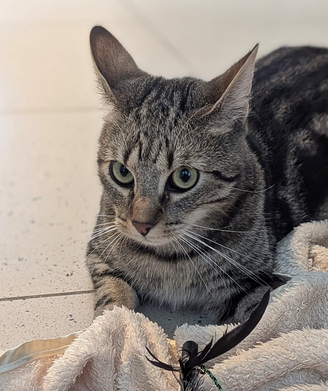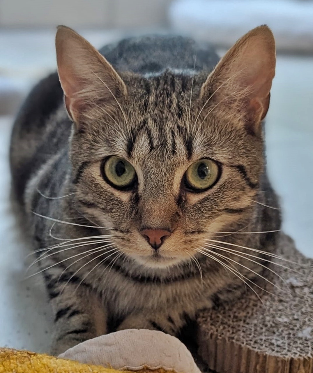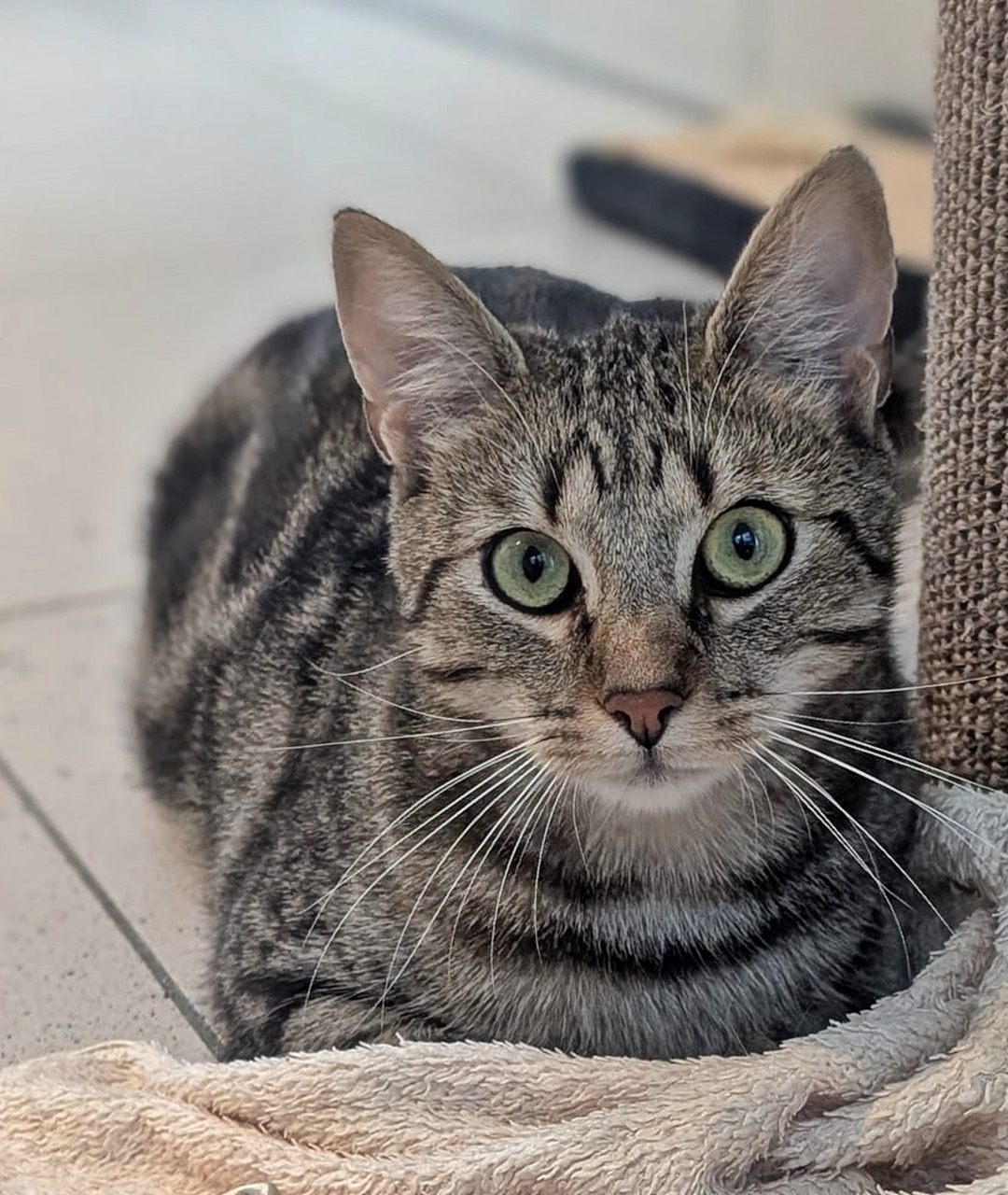 Der schöne junge Brauntiger Davidson mit geblodgtem Fell kam gemeinsam mit einigen Artgenossen als Fundkitten zu uns ins Tierheim. Leider hatten wir aufgrund der vielen Samtpfoten nicht viel Zeit, uns viel mit ihnen zu beschäftigen, deshalb zeigt er sich immer noch etwas vorsichtig.