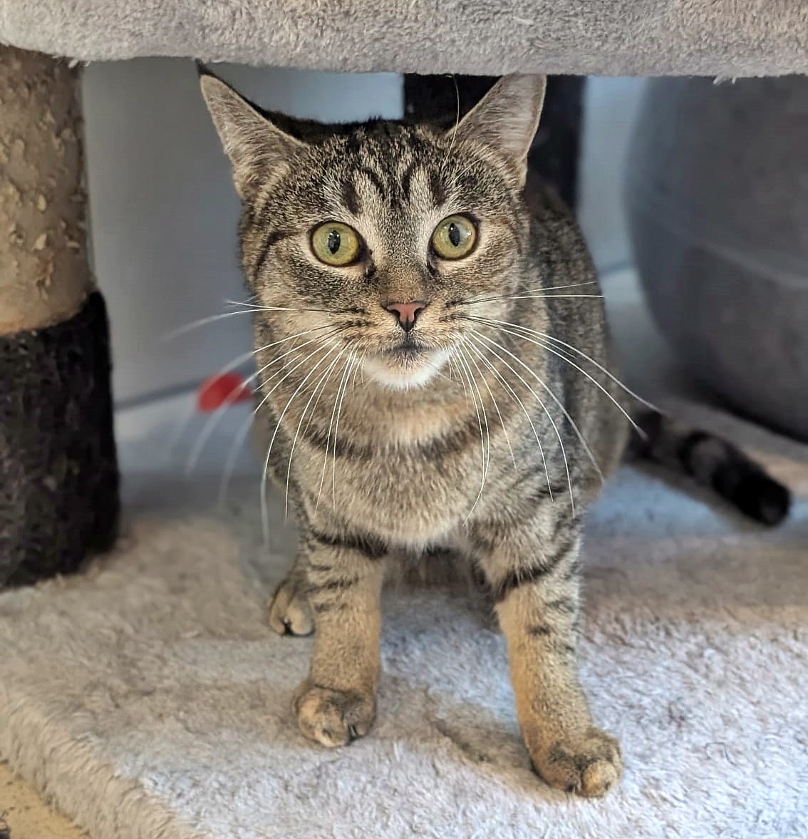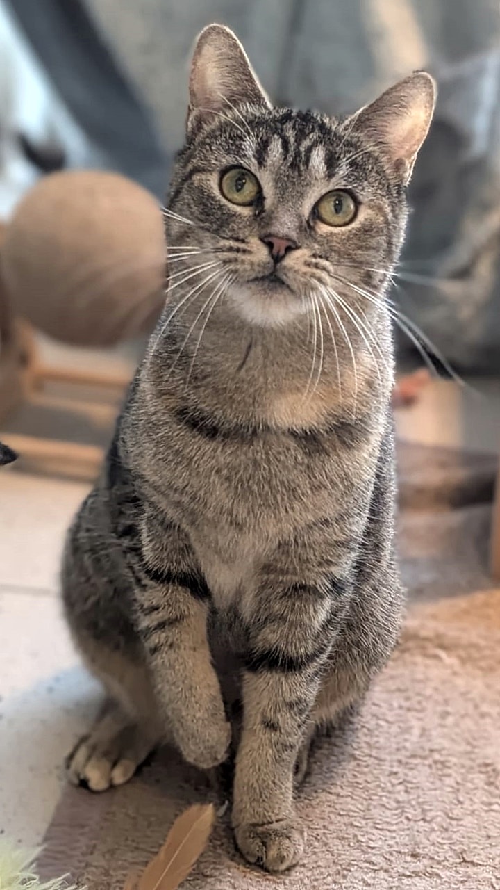 Die schöne Tigerkatze Simea kam als kleines Kitten gemeinsam mit ihrer Mutter Vaiana und ihren Geschwistern in unser Tierheim. Alle konnten vermittelt werden - bis auf Simea.