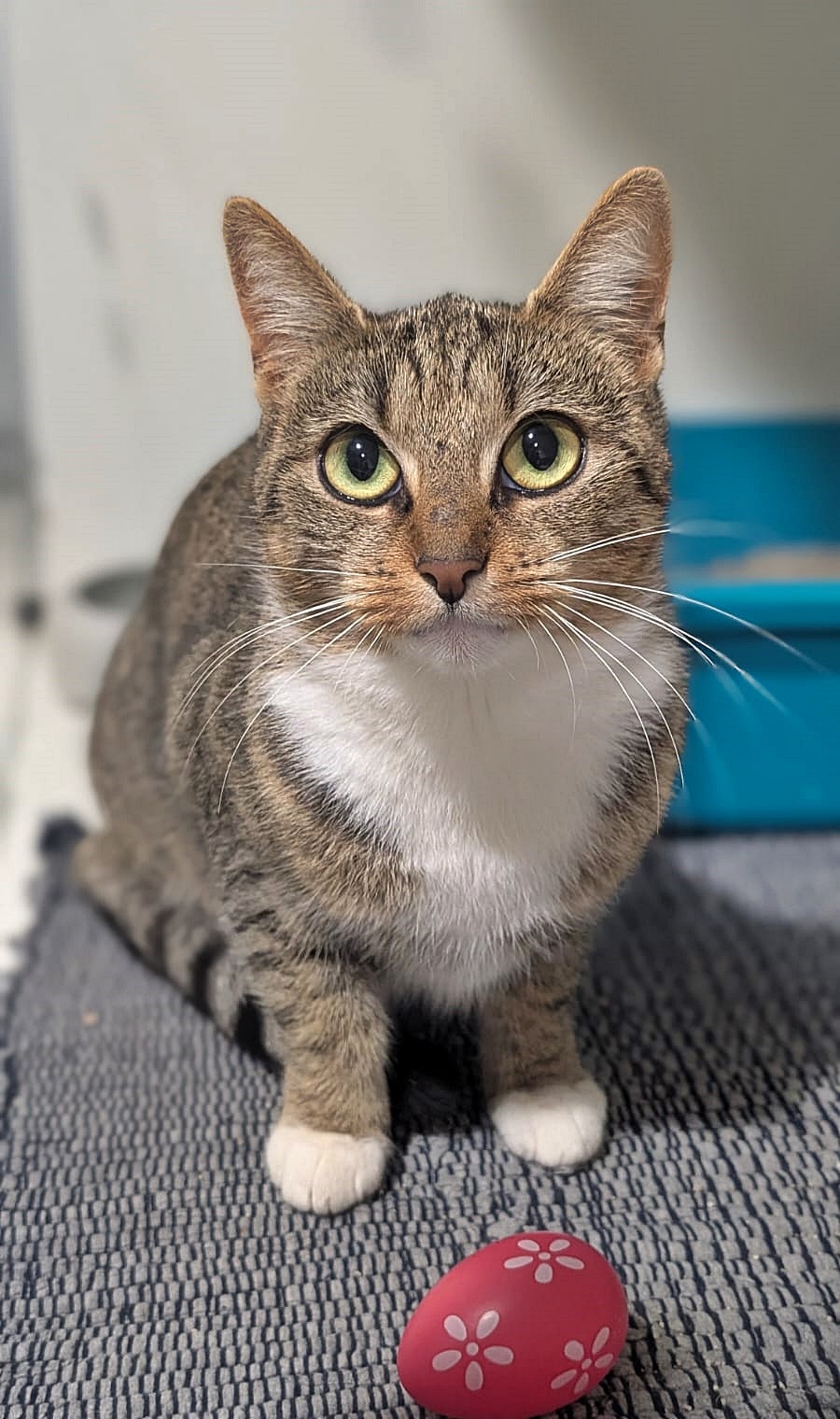 Kiwi ist eine super niedliche Tigerkatze mit rötlichem Einschlag. Besonders ihr bezauberndes Schnütken fällt Besuchern sofort aus.