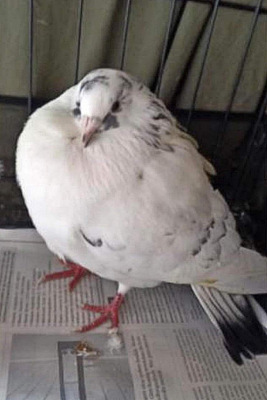 Peter kam im Herbst sehr zerzaust zu uns. Er saß dort mit einer anderen Taube in einem kleinen Käfig und wurde wohl als Hochzeitstaube gehalten. Nachdem das Taubenmädchen dort gestorben war, wurde Peter bei uns abgegeben.