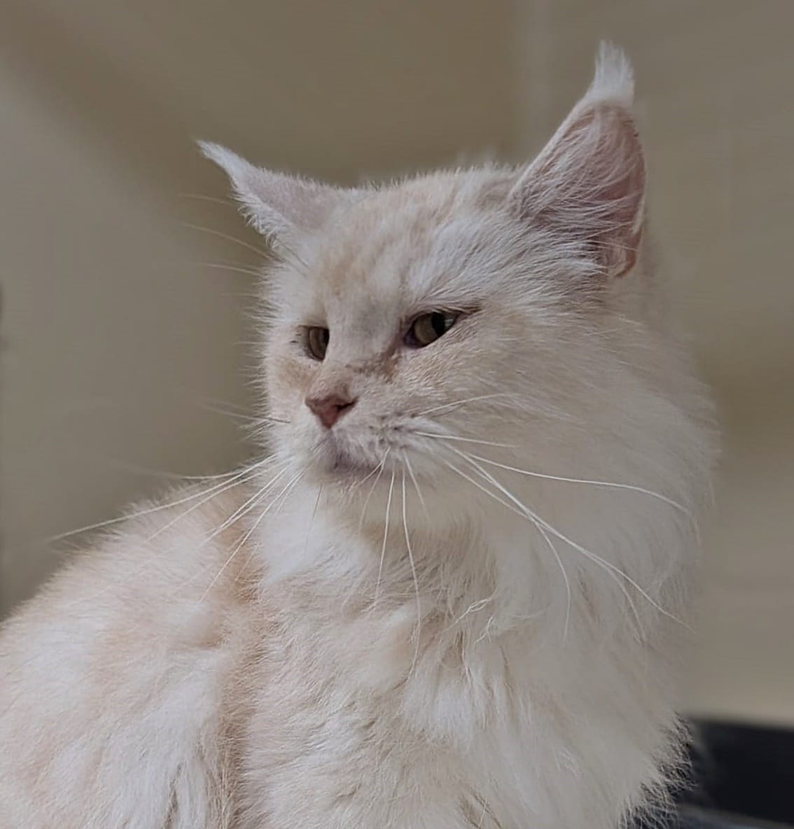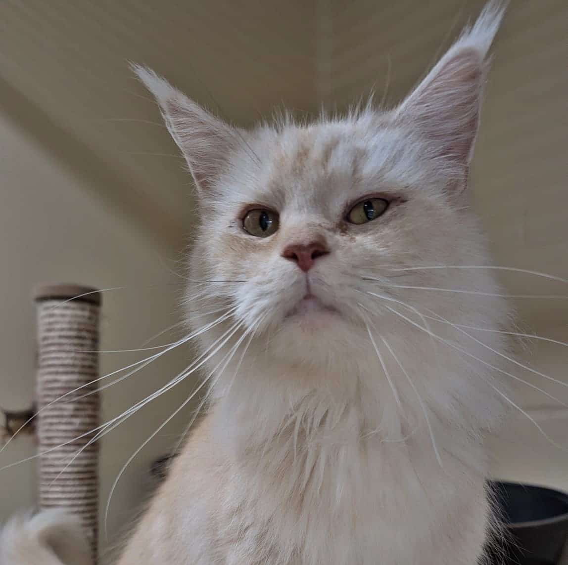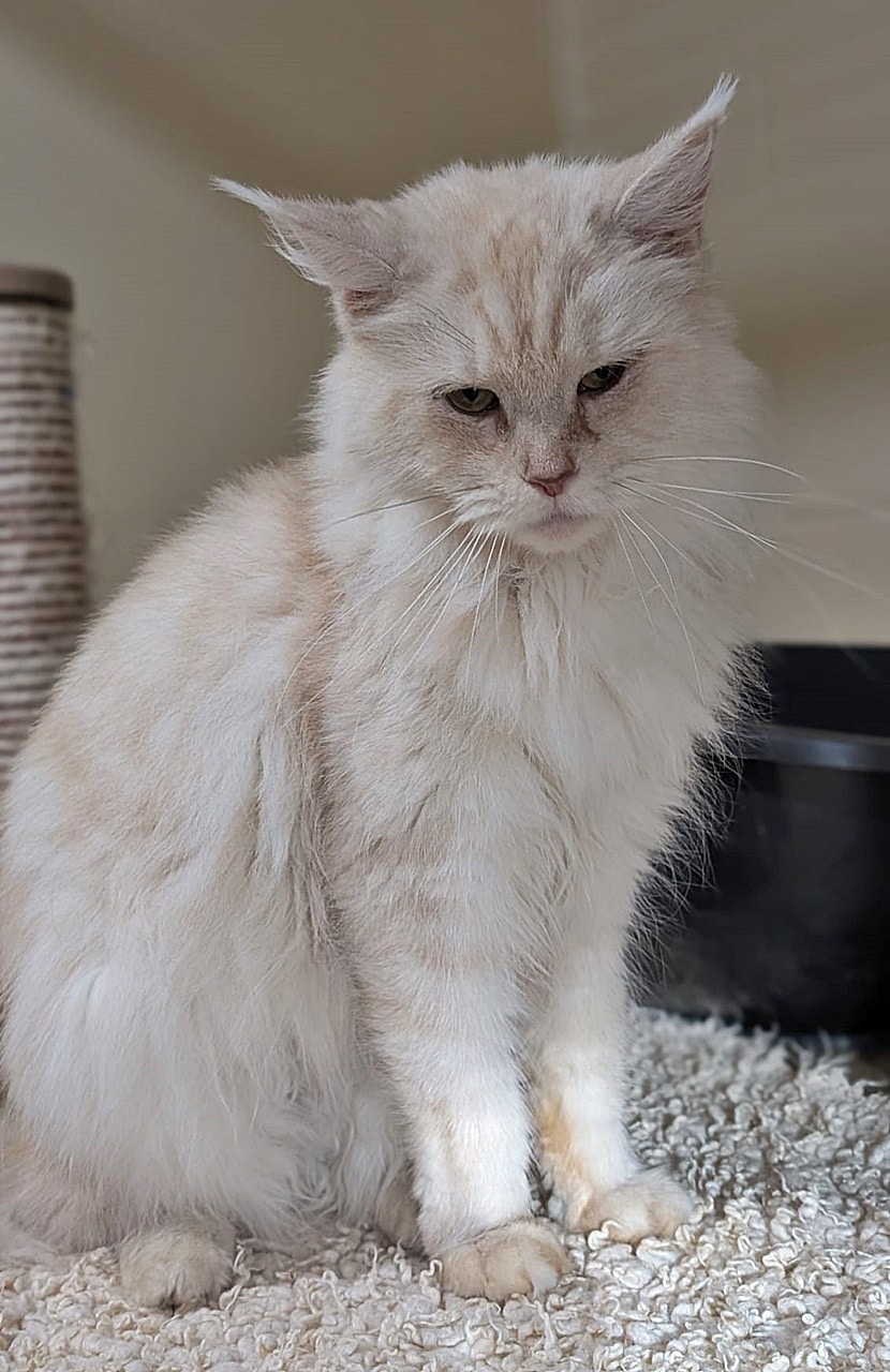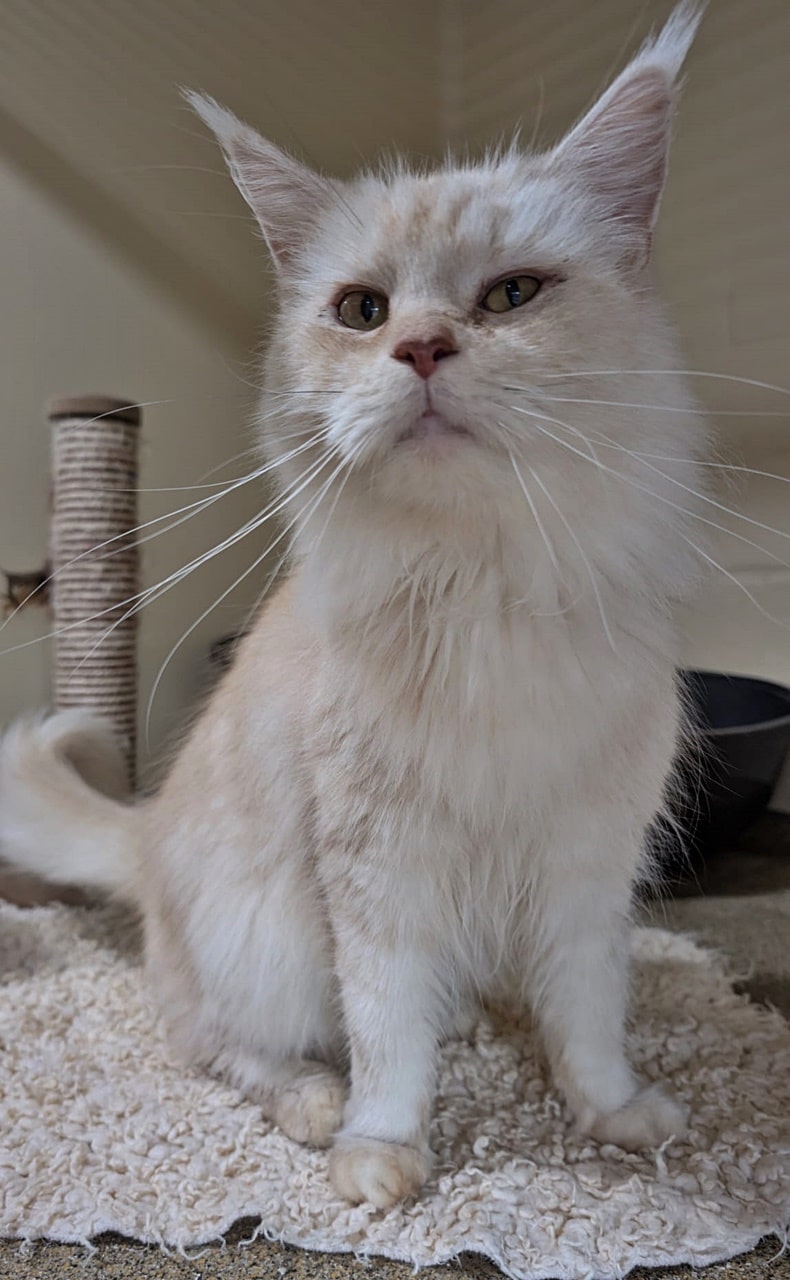 Wir nehmen an, dass unsere Schöne ein Main Coon Mix ist, für eine reinrassige Samtpfote ist sie etwas klein geraten.