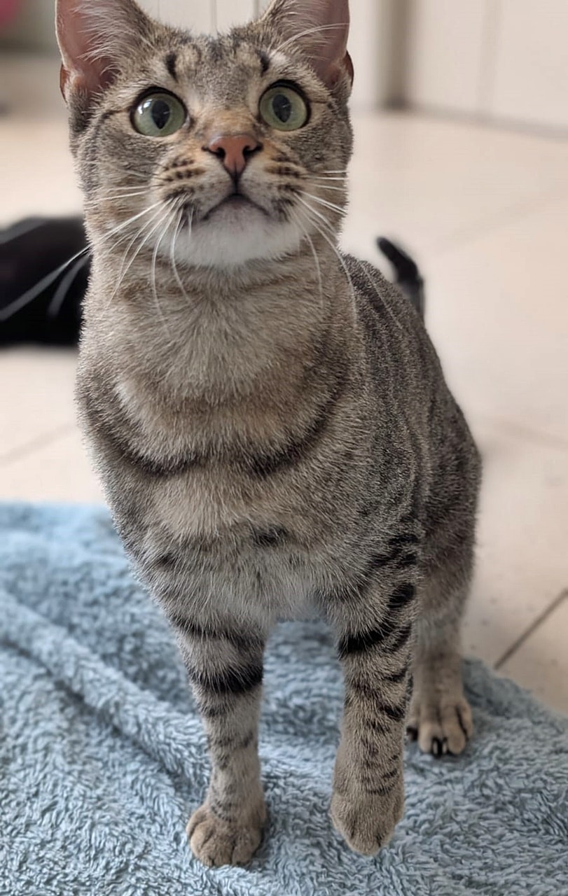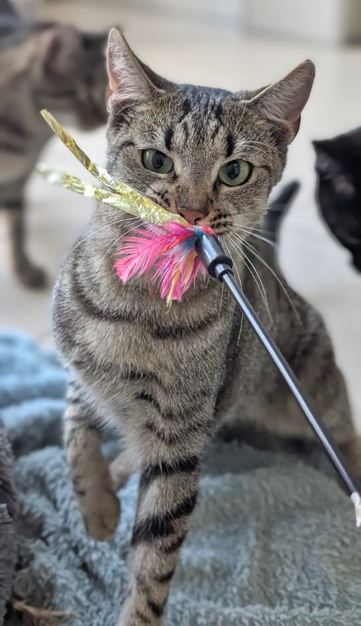 Obwohl der schöne Jimmy im zarten Alter von 2 Monaten zu uns kam, haben wir es aus Zeitmangel nicht hin bekommen, dass er zutraulich wird. Jimmy ist immer noch sehr ängstlich, nur wenn seine Kuschelpatin den Raum betritt, darf diese ihn vorsichtig streicheln und mit ihm und einer Angel spielen.