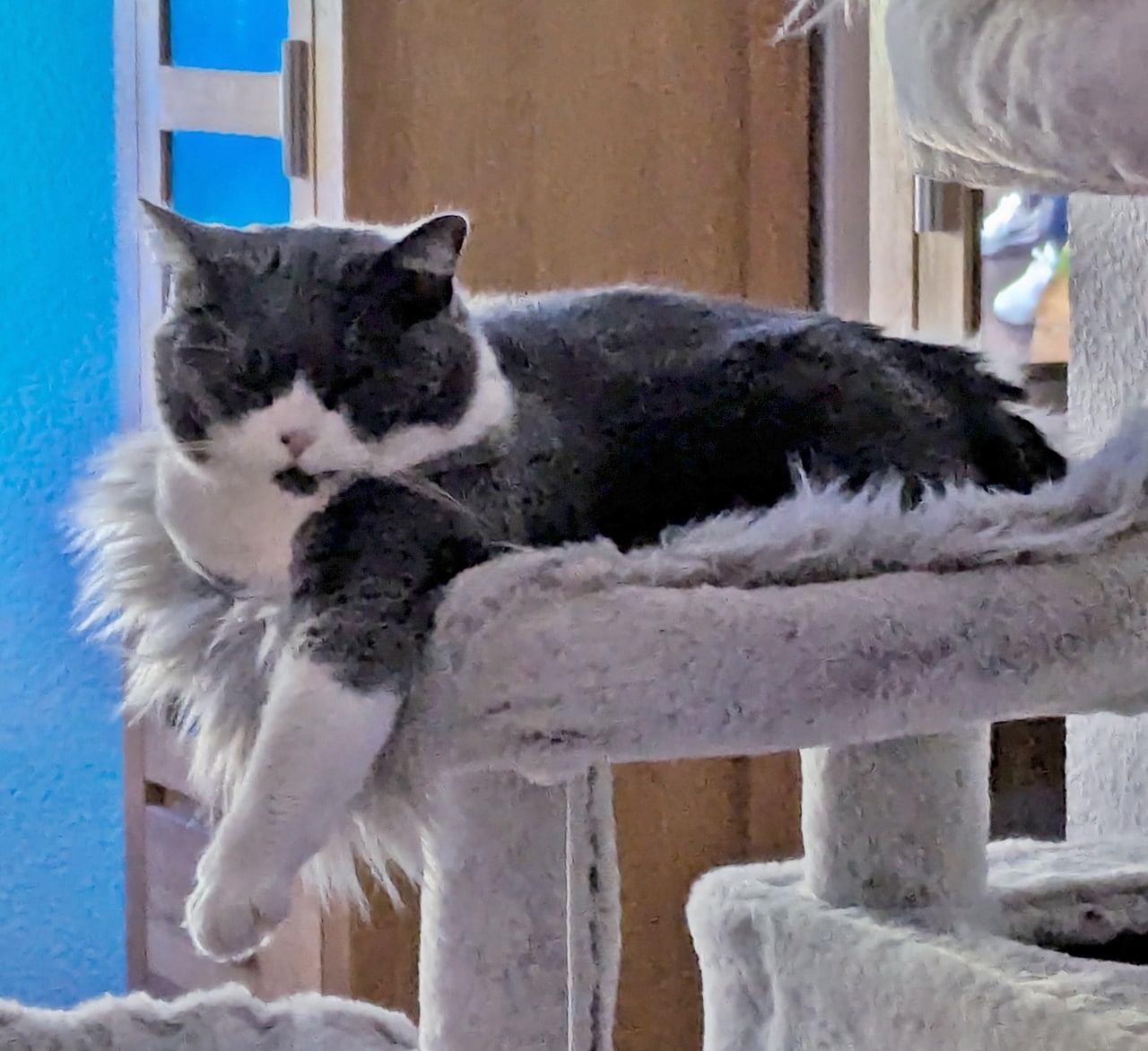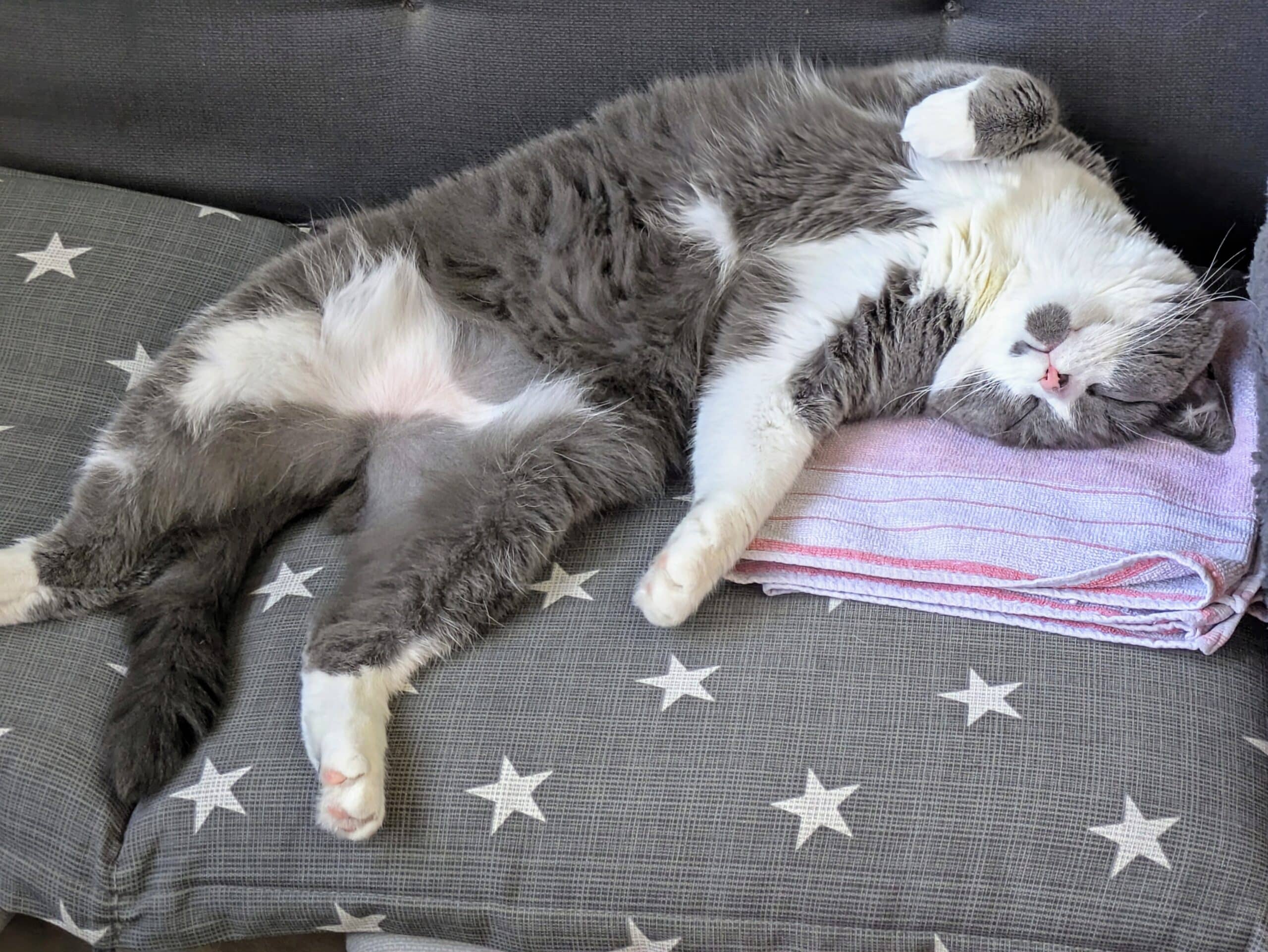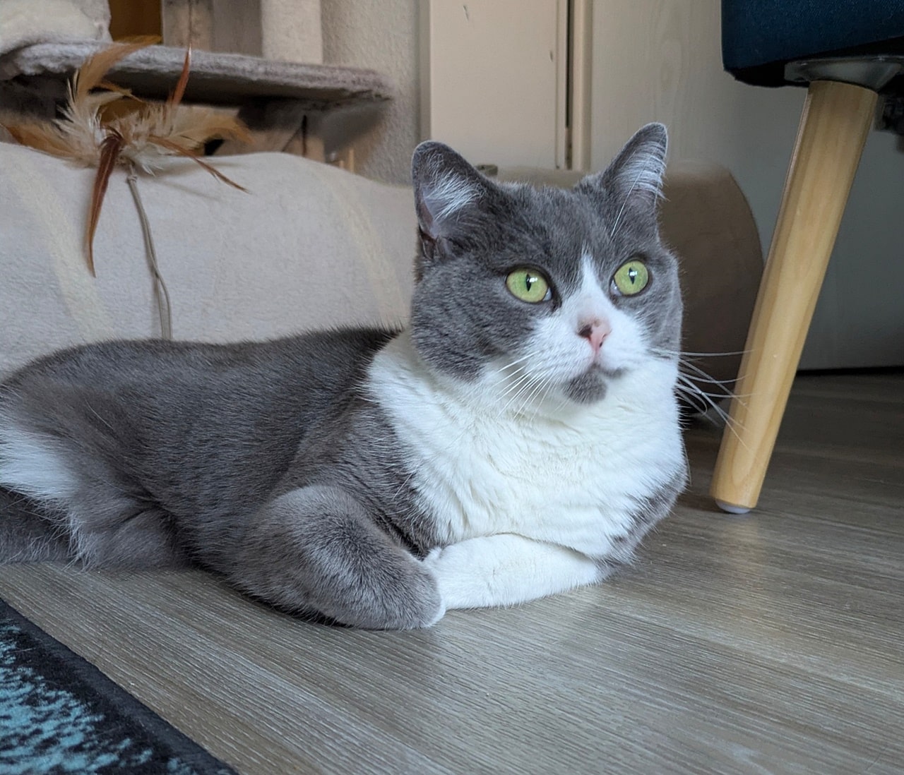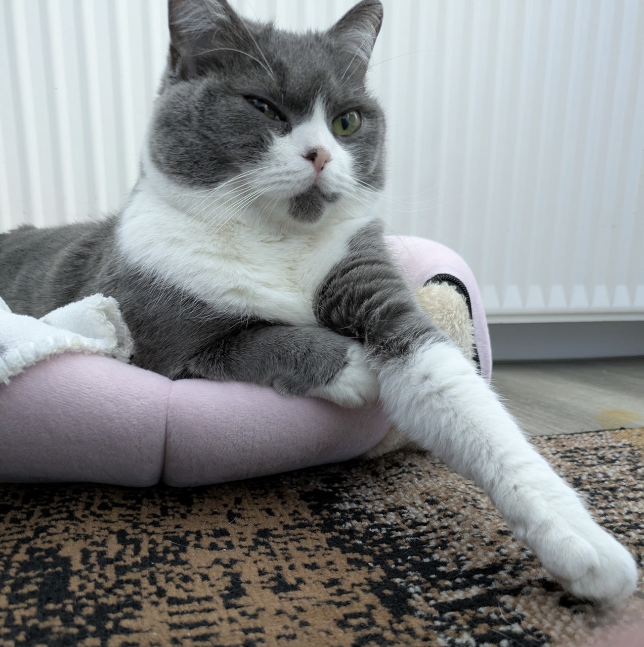 Sie ist aber keine Schmusekatze. Streicheln lässt sie sich schon, aber sie bestimmt, wann Schluss ist. Auf den Schoß geht sie nicht so gerne. Sie liebt die Ruhe.