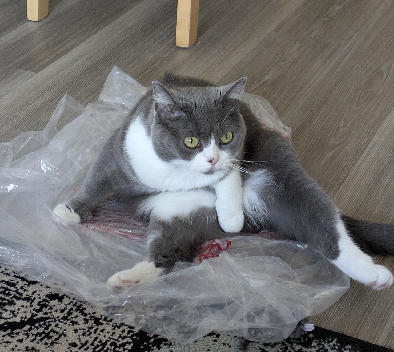 Jede Katze liebt Kartons, Josie mag die gar nicht, dafür liebt sie Plastiktüten, die schiebt sie durch die ganze Wohnung.