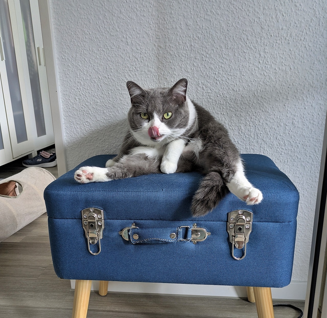 Sie frisst nichts, was wir Menschen essen. Man kann also alles ohne Bedenken auf dem Tisch stehen lassen. Wasser trinkt sie nur aus einem Katzenbrunnen, den gebe ich aber mit. Was die Nahrung angeht, ist sie sehr wählerisch