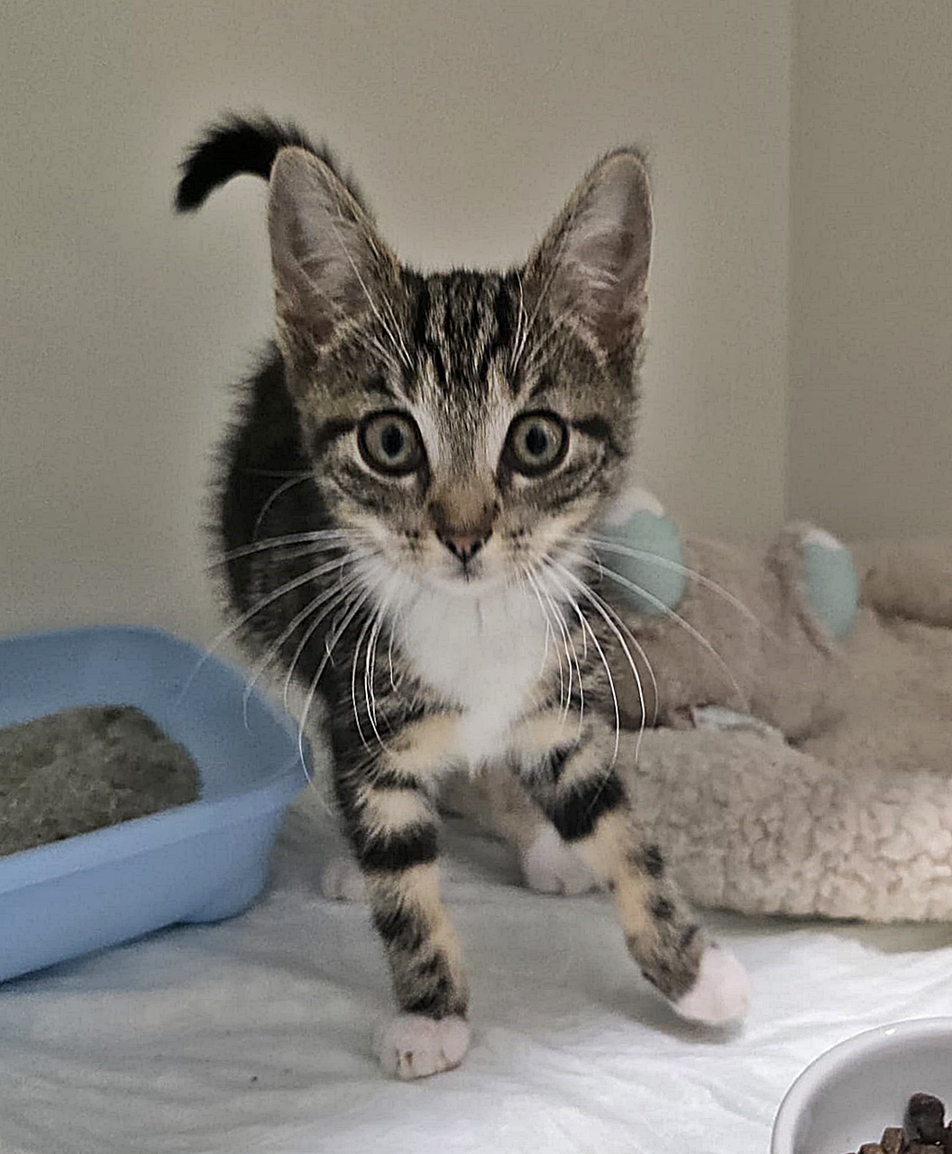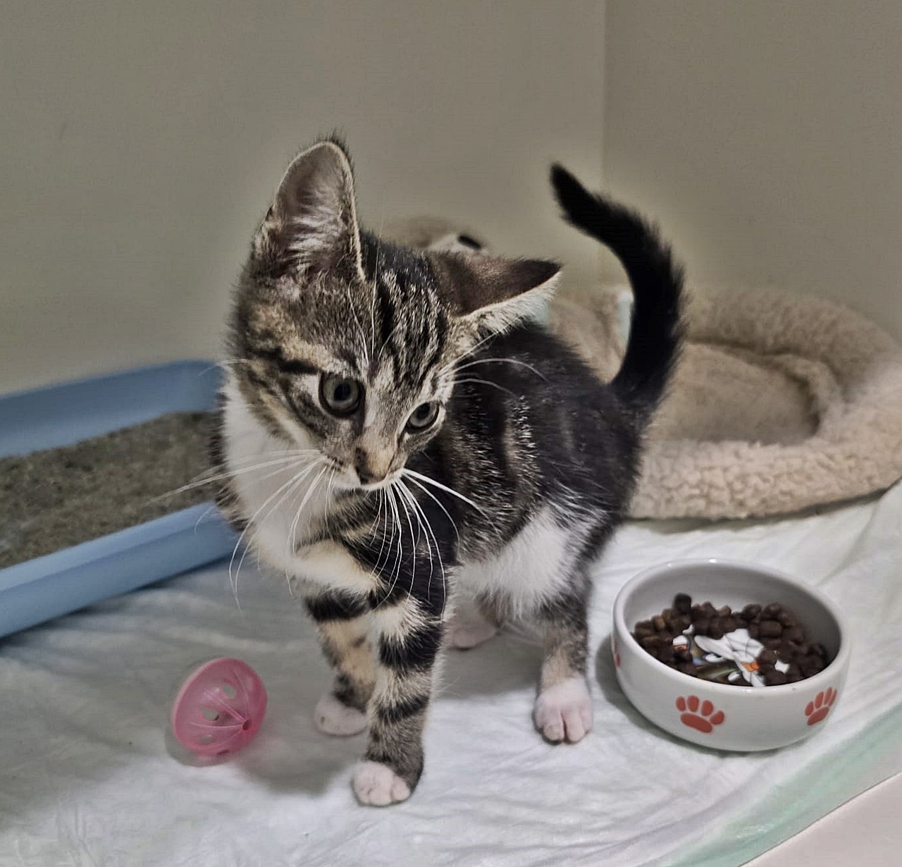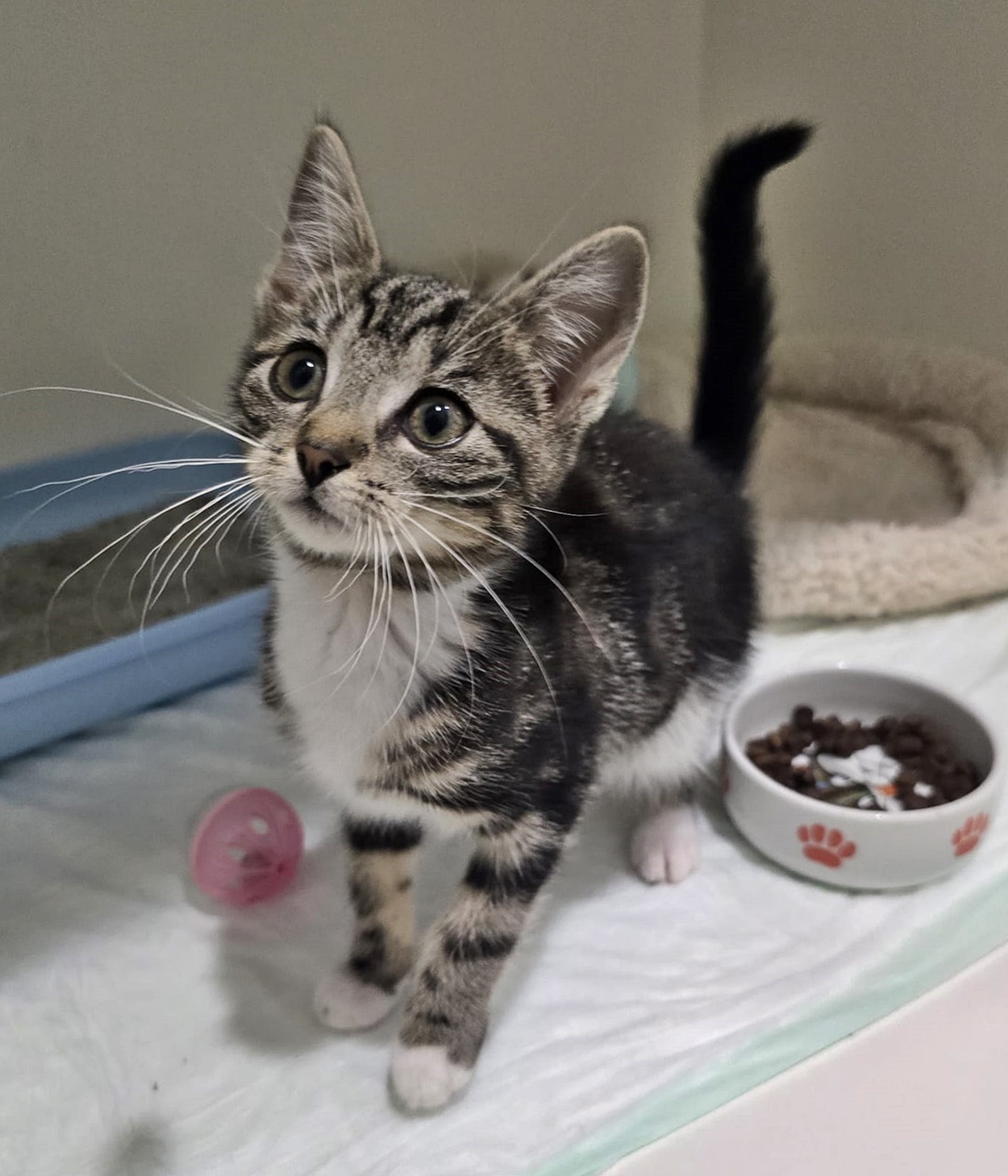 Toffifee ist eine super niedliche kleine Samtpfote, die einsam ohne Mama oder Geschwister aufgefunden wurde.