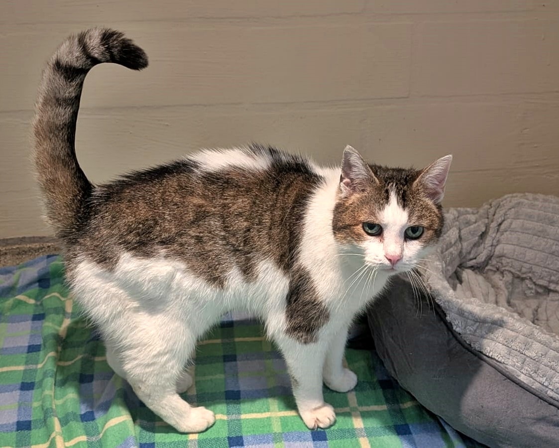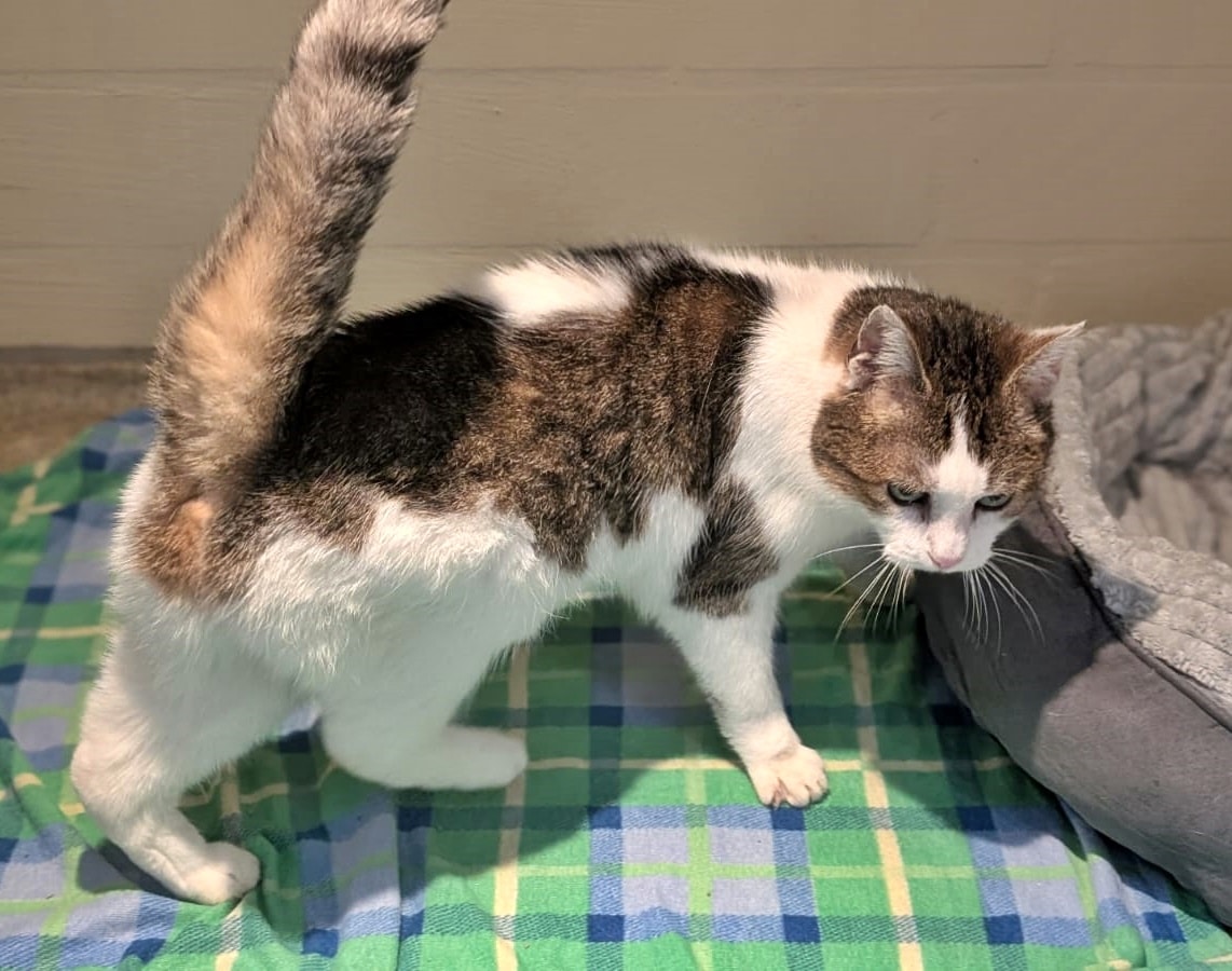 Die hübsche Carry kam als Fundkatze in unser Tierheim. Sofort fiel auf, dass ihr schönes weiches Fell stark nach Qualm stank; sie hat wahrscheinnlich mit einem Raucher zusammen gelebt.