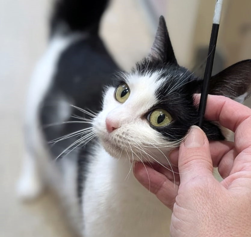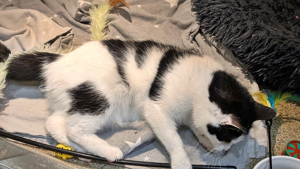 Wegen der Kopfschiefhaltung möchten wir Lindy in eine geräumige Wohnung mit Klettermöglichkeiten vermitteln und nicht mit Freigang. Trotzdem soll sie später kastriert werden.